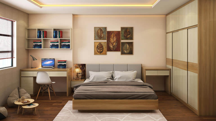 Ngoài ra, cách kết hợp màu xám và xanh cũng rất táo bạo. Nhiều nhà trang trí nội thất chuyên nghiệp thường sử dụng sự kết hợp này. Sự trầm tĩnh của màu xám kết hợp với sự dịu êm, tươi mát của màu xanh dương vô cùng “ăn ý”, đem lại sự hoàn thiện cho tổng thể không gian, giúp bạn có cảm giác thanh bình, tràn đầy sức sống. Sự lựa chọn kết hợp 2 gam màu trung tính và màu lạnh là sự lựa chọn tốt cho sơn nhà phòng ngủ.