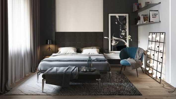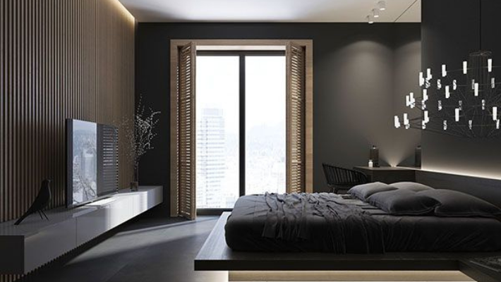 Bởi vì màu đen chính là màu thích hợp với hầu hết những thiết kế nên nó sẽ thêm độ tương phản và làm cho những màu khác nổi bật hơn, kết hợp cùng với phụ kiện có tone màu gỗ sẽ tạo thêm phong cách cổ điển dành cho không gian nghỉ ngơi của gia chủ.