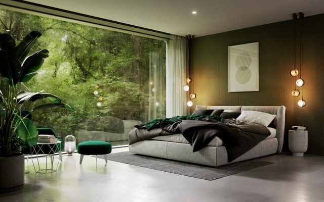 Điểm nhấn trong phòng ngủ  chính là sự kết hợp giữa nội thất và thiên nhiên ngoài trời. Chỉ khi kết hợp hai yếu tố này một cách tinh tế, tổng thể phòng ngủ mới trở nên tràn đầy sức sống. Hãy để cửa sổ rộng, hoặc thiết kế phòng ngủ gần với cây xanh, nhìn được bầu trời, đón được gió mát và nắng sớm.